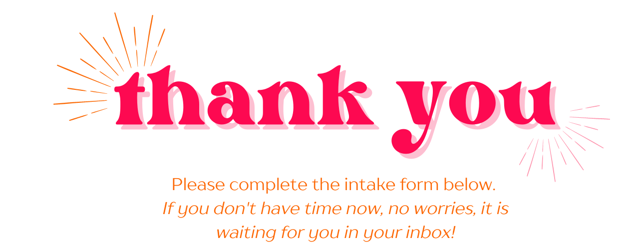 Please complete the intakeform below. If you don't have time now, no worries, it is waiting for you in your inbox!